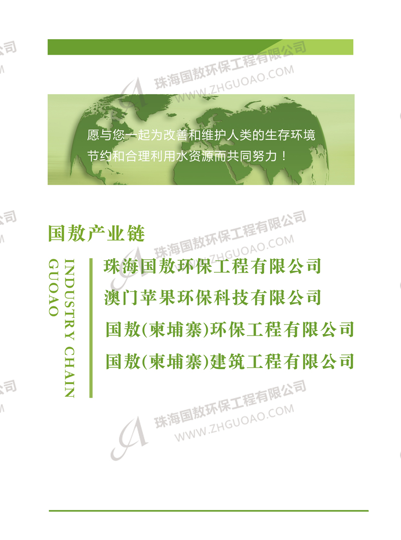 公司產業鏈:珠海國敖環保工程有限公司、澳門蘋果環保科技有限公司、國敖(柬埔寨)環保工程有限公司、國敖(柬埔寨)建筑工程有限公司